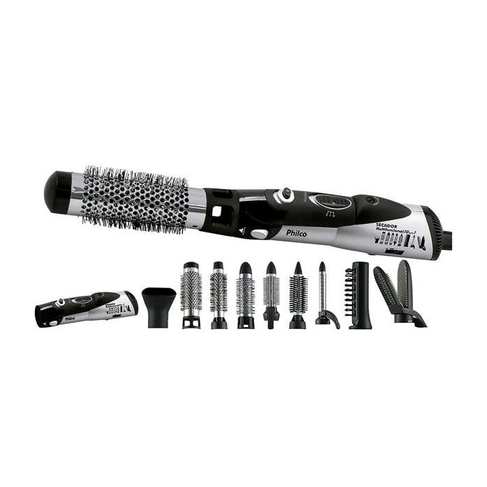 Secador Philco Multifuncional 10 em 1 700W Bivolt Preto | Prata