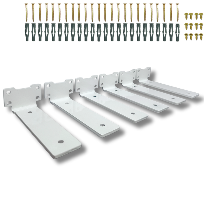 Seis Suportes de Parede Formato Invisível 15cm Mão Francesa Design Moderno para Prateleira Branco Branco