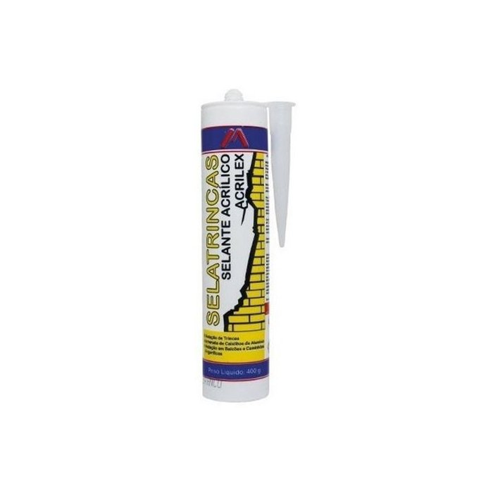O Selatrincas Mastiflex é um produto de excelente aderência e flexibilidade. Indicado para preenchimento de juntas, trincas e fissuras de até 10 mm.Pode ser aplicado em alvenaria, concreto, pisos, lajes, telhas, caixilhos, caminhões, balcões frigoríficos, rufos, calhas, entre outros.Sela Trincas é um Selante Acrílico de excelente aderência e flexibilidade, ótima resistência a água e intempéries após seco.INDICAÇÕES:Calafetação e preenchimento de trincas, juntas e fissuras de até 10 mm. Utilizado em alvenaria, concreto, pisos, lajes, telhas, caixilharia, calhas, rufos, painéis de refrigeração, baús, policarbonato, câmaras frigoríficas, móveis de aço, ar condicionado, entre outros.APLICAÇÕES:A aplicação poderá ser feita com pincel, espátula e aplicadores manuais ou pneumáticos. Observar que as superfícies a serem aplicadas devem estar isentas de óleo, poeira e graxa.*Secagem: Á ± 25º C, e umidade relativa do ar a 70%, um filme de 2mm, ao toque 1 hora e total 24 horasCor: BrancoEmbalagem: Tubo de 400g (Peso líquido)*PISTOLA APLICADORA NÃO INCLUSA