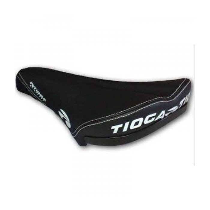 Selim da marca TIOGA modelo MC Groove, de uma linha de selins especiais para competição, ele é fabricado com trilhos em cromoly super resistentes e tem sua estrutura interna injetada com gel, possui tecnologias especiais para preservar a saúde, ele possui um vão no centro que evita um maior pressão na região do pélvis além de proporcionar uma maior ventilação para essa mesma região
