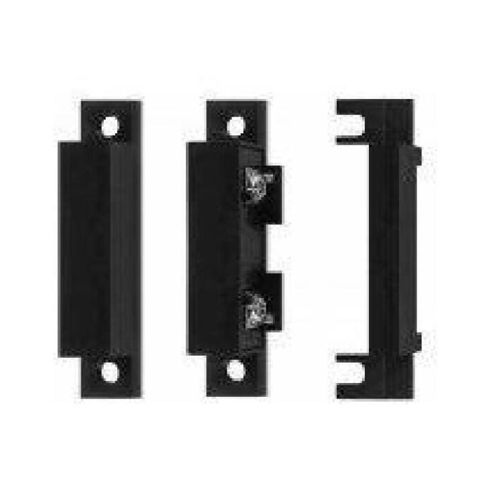 Entre o sensor e a central de alarme. Dispensa a necessidade de solda de fios, pois dispõe de parafusos para fixação.