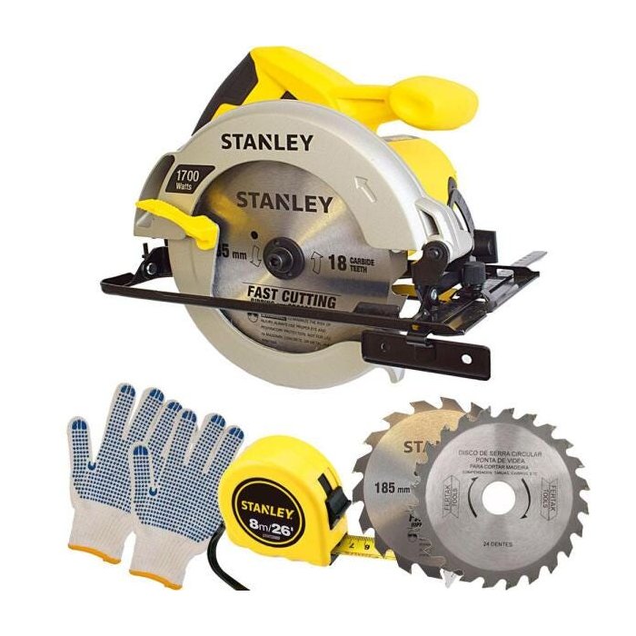 Serra Circular 1700W Stanley 110V com Kit Luva, Disco e Trena