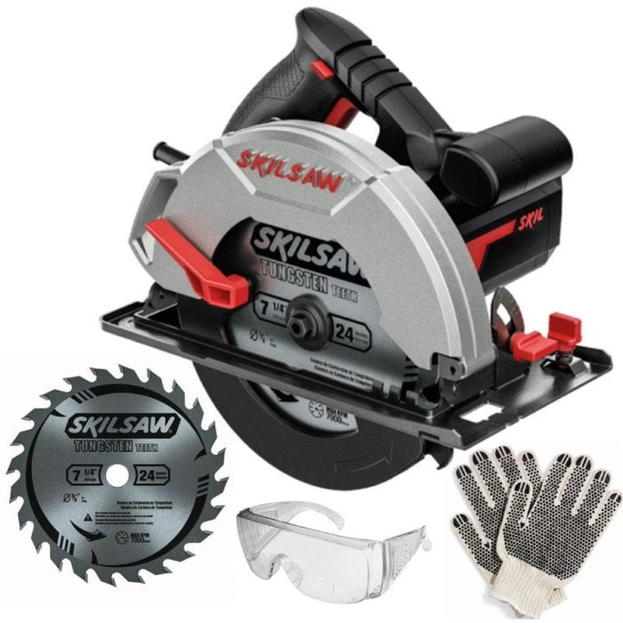 Serra Circular Skil 5200 127v 1200w com Disco e Kit EPI Benefícios: Visibilidade através da placa-base Função sopro que mantém a área de corte limpa Punho ergonômico parecido com o de um serrote Trava de eixo para trocar o disco Base chata do motor para apoiar a serra e trocar o disco Troque o disco com a chave allen ou sextavada Características Técnicas: Disco 7 1/4" / 184 mm Rotação 5000 min-1 Peso 3.7 kg Eixo 5/8" Potência, de 1,200 W Máxima profundidade de corte 45° 45 mm 90° 65 mm Acompanha - 01 Disco de Serra Circular Skil + Par de Luvas + Óculos de Proteção