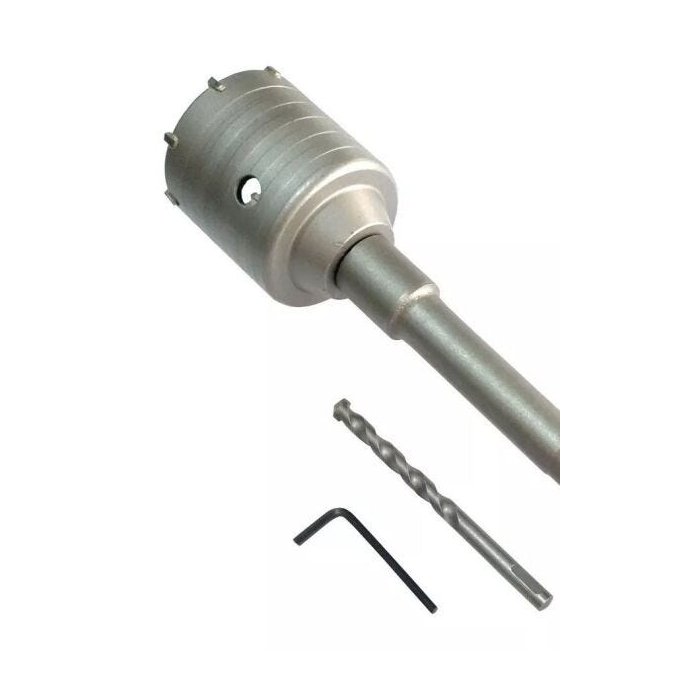 SERRA COPO (COM HASTE) VIDEA PARA CONCRETO, ALVENARIA E PEDRA Kit com dois produtos: -Serra copo de videa , em aço carbono forjado e temperado, galvanizado, altura total 7cm, para fazer orifícios redondos em paredes, concreto, tijolos, pedra, cerâmicas, etc. -Haste para Serra copo de videa, encaixe SDS Plus, em aço cromo vanádio temperado, (As hastes em CRV não oxidam, durando muito mais que os copos. Estes são em aço carbono, pois suas laminas desgastam rapidamente com o uso, e o profissional pode trocar apenas o copo), com broca piloto de 8mm, para uso com as Serra copos de 35 a 105 mm. Produtos reforçados e resistentes, para uso profissional. Resumo do produto: Serra copo tamanho: 70x39x40MM Haste Suporteencaixe SDS Plus 250mm e Broca Guia Piloto Broca guia piloto Mini Chave suporte encaixe Qualidade Garantida Rede Formiga