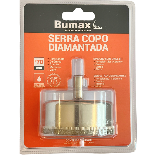 Principais Características:Alta Resistência: Feita com materiais duráveis, a serra copo é projetada para suportar as demandas de aplicações profissionais.Eficiência de Corte: A estrutura diamantada permite uma perfuração mais rápida, reduzindo o tempo de trabalho e aumentando a produtividade.Versatilidade: Ideal para diversos tipos de projetos, desde instalação de pisos até reformas em ambientes residenciais e comerciais.Transforme sua experiência de perfuração com a Serra Copo Diamantada e alcance resultados profissionais com facilidade e agilidade. A escolha perfeita para quem não abre mão da qualidade e da precisão em cada detalhe!