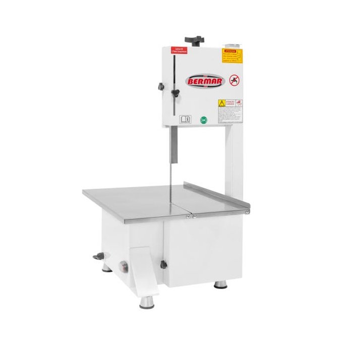 SERRA FITA DE BANCADA LÂMINA 174M BM103 • BM 103 – 127v • Motor: 368W – 60 Hz • Voltagem: 127v • Monofásico • Consumo: KW/h 036 • Comprimento da lâmina 174m • Corte com altura de 245mm • Dimensão da mesa 410X525mm • Estrutura em carbono pintura em tinta epoxi branco Dimensões • Comprimento: 560mm • Altura: 865mm • Largura: 480mm • Peso líquido: 315 kg Embalagem • Profundidade: 660mm • Altura: 950mm • Largura: 600mm • Peso bruto: 37 kg • Cubagem: 037m³ Utilidade • Utilizado para serrar ossos carnes peixes etc.
