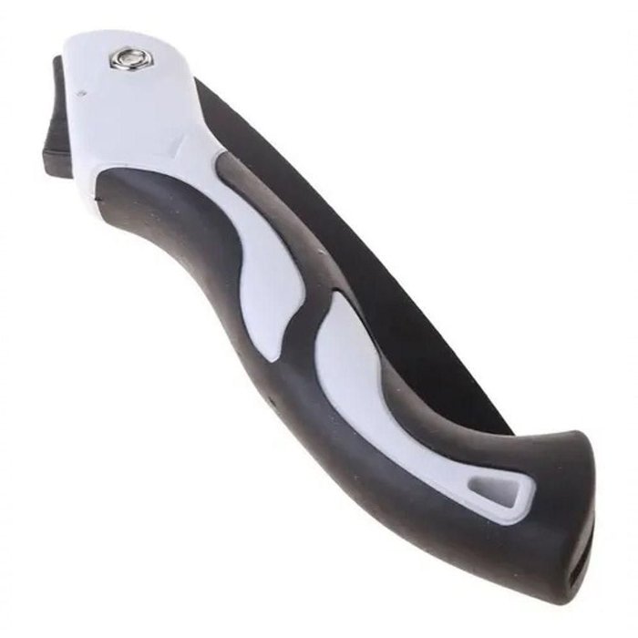 A serra de poda é dobrável para facilitar o uso, transporte seguro e manuseio, possui trava de segurança que mantém a lâmina aberta durante o trabalho e fechada para armazenamento seguro.
