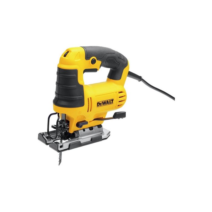 Uma ferramenta que executa cortes curvos e retos, cortes de imersão, chanfrados e outras formas de cortes, a Serra tico tico 650 watts velocidade variável e ação pendular DWE300 da Dewalt.