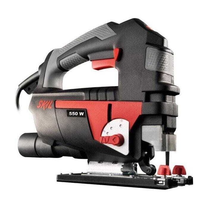 A Serra Tico-Tico Skil para uso profissional tem 550 watts e é indicada para cortes retos e curvos, recortes, cortes de imersão, em compostos de madeira, compensados, folhas de metal, alumínio, gesso, resina de epóxi, laminados e superfícies sólidas.