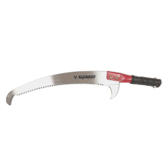 O podador Super Topman é um serrote ideal para a poda alta, a lâmina tem 425 mm com afiação trapezoidal, são dentes com 5 pontos de contato e 3 pontos de corte, neste sistema de afiação o corte é muito mais rápido e limpo, além de espalhar a seiva, por isso é considerado um corte com função selante. A lâmina possui uma leve inclinação isso faz a poda ficar muito mais leve e com forte pegada, outra vantagem é a lâmina cônica, mais espessa nas costas e mais fina nos dentes, desta forma o serrote entra na madeira sem engasgar além de reduzir a fricção na madeira consequentemente dimuinuindo o estresse da planta. Integrado a lâmina um potente gancho que serve para cortar pequenos ramos, cipós e auxiliar na manobra de galhos que ficam presos na árvore, na base inferior um gancho super afiado e submetido a tratamento térmico para ter afiação prolongada, com ele você corta a casca evitando que galhos mais grossos lasquem a planta e também para eliminar galhos ladrões. O Super Topman 425mm é uma ferramenta totalmente superior, com ela você tem qualidade no serviço e produtividade. A lâmina é tratada com uma camada especial de verniz para maior proteção contra a seiva, é usar e limpar e o serrote vai durar muito. O cabo é em aço com uma luva de borracha, o cabo permite o corte manual ou acoplado aos cabos extensores duraluminio de 2,5mts, 5mts ou 7 metros. A lâmina pode ser afiada usando a lima trapezoidal Topman. Comprimento da lâmina : 425mm comprimento total: 635mm Origem: Japão Fabricante: Topman
