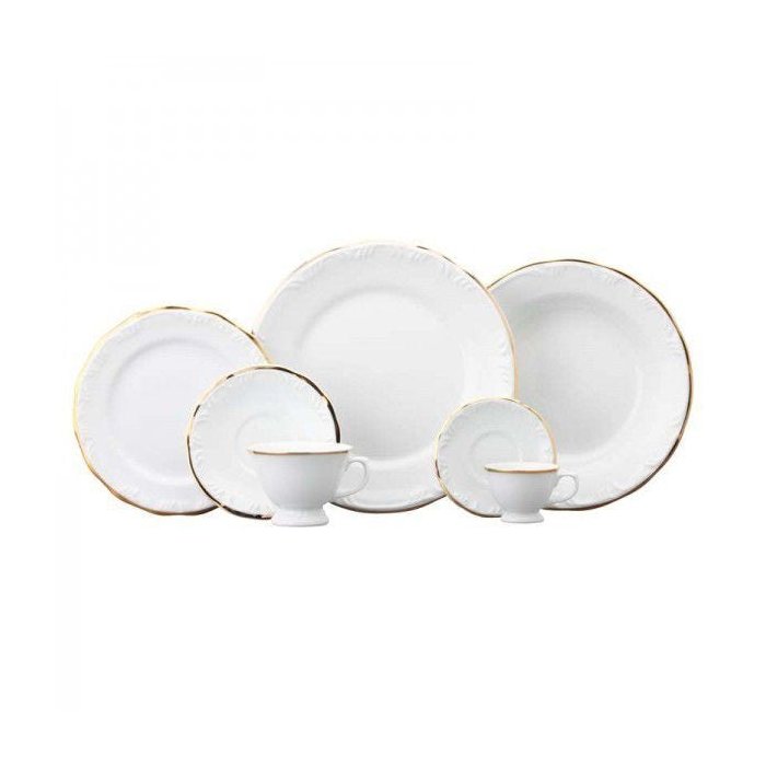 Serviço de Jantar e Chá em Porcelana 30 Peças - Pomerode Filete de Ouro Schmidt