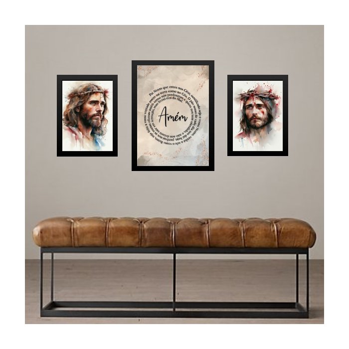 Set 3 Quadros Jesus Cristo - Pai Nosso:moldura Preta