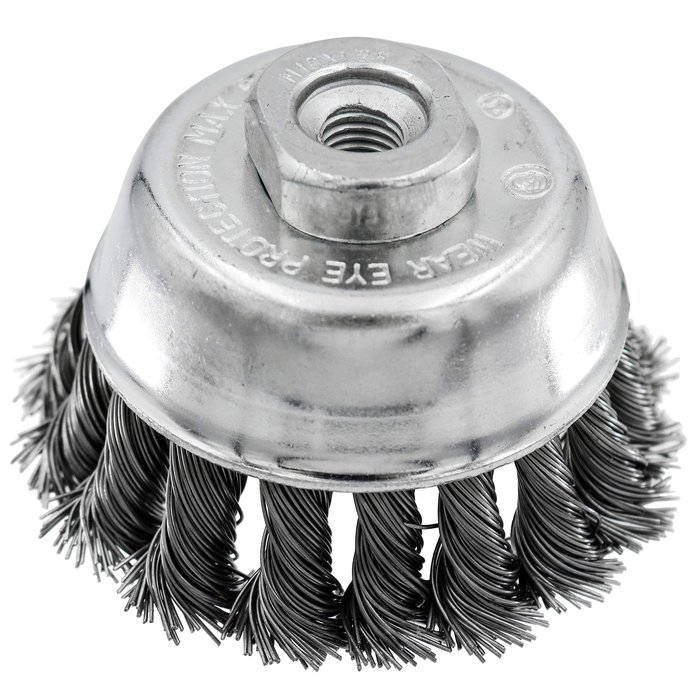Alta Resistência: Fios torcidos de aço para máxima durabilidade. Tamanho Prático: 7,6 cm, ideal para diversas aplicações. Versatilidade: Perfeita para limpeza, remoção de ferrugem e tinta. Compatibilidade: Arbor métrico M10-1,25 para esmerilhadeiras.