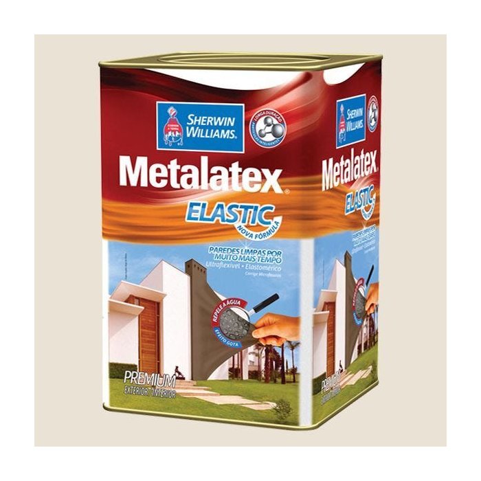 Metalatex Elastic é uma tinta acrílica elastomérica que repele imediatamente a água deixando as paredes novas por muito mais tempo. Oferece alta proteção contra a umidade e as ações do tempo, além de conferir alta flexibilidade, acompanhando a movimentação da superfície e evitando microfissuras. Desenvolvida com matérias primas de alta tecnologia, sua formulação permite que a pintura seja feita em áreas internas ocupadas, garantindo que o ambiente permaneça sem cheiro* em até uma hora após aplicação.*Seguidas corretamente as instruções de aplicação e mantendo-se o ambiente ventilado, após 1 hora da aplicação, o cheiro característico da tinta é praticamente imperceptível