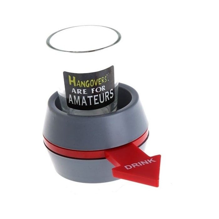 • Você coloca o líquido (pinga, tequila, caipirinha, refrigerante, suco ou o que quiser) no copo que acompanha a o produto e gira a seta, para quem ela estiver apontada quando parar tem que virar a bebida.