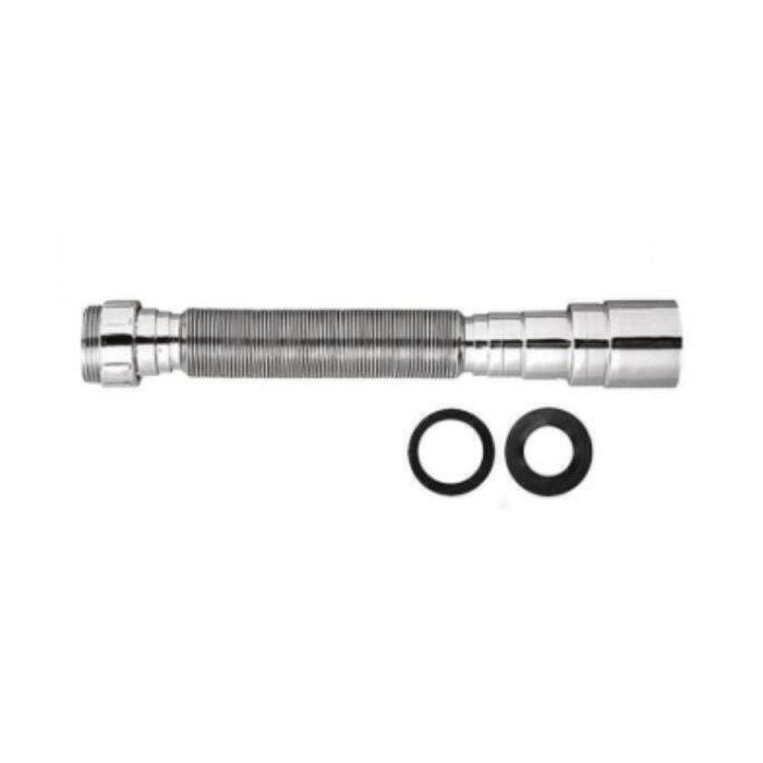 Sifão sanfonado cromado para água quente e fria. O tubo extensível proporciona adaptação em diversos locais, fácil manutenção e fácil acesso para limpeza e desobstrução.