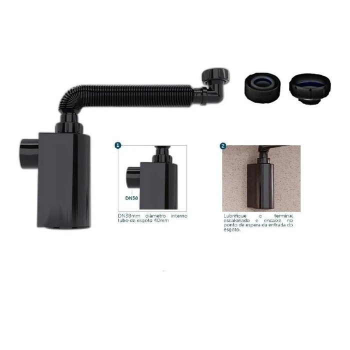 Dentre as diversas opções de sifões, a blukit dispõe de um modelo muito versátil. A grande vantagem desse sistema é que o copo é rosqueável e facilmente removível, o que facilita muito a limpeza e a retirada dos detritos em caso de entupimento. Dessa forma, não é preciso desinstalar todo o sifão cada vez que a limpeza e a manutenção do sistema forem necessárias.
