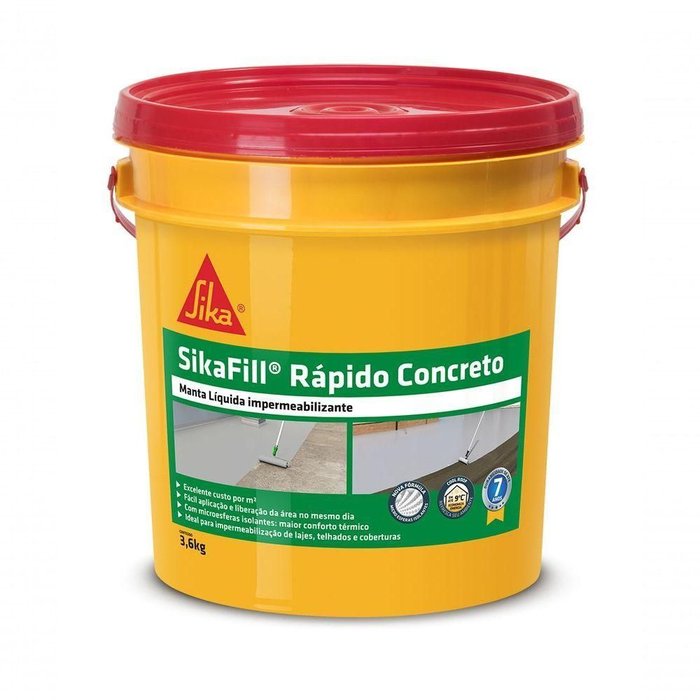 O SikaFill® Rápido cor Concreto é um impermeabilizante à base de resinas acrílicas elásticas e flexíveis e com micro esferas poliméricas, aplicado a frio, para impermeabilização de telhados, lajes e pisos de áreas frias.