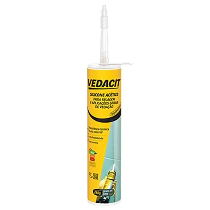O VEDACIT SILICONE ACÉTICO é um selante de cura acética e com alto módulo, que cura a temperatura ambiente através da umidade do ar e se converte em borracha flexível. É adequado para selagens e aplicações gerais de vedação.