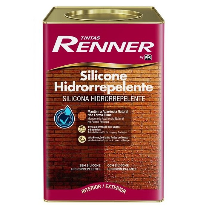 Silicone Hidrorrepelente é um produto especialmente desenvolvido à base de silicone para promover a hidrorrepelência e impermeabilização das superfícies. Oferece proteção contra a umidade, às ações do tempo, aos fungos e às bactérias. Reduz a capacidade de absorção da água das superfícies e não modifica seu aspecto natural, pois não forma filme. Pode ser utilizado como fundo devido a ser resistente à alcalinidade (eflorescência) em superfícies de reboco cru (reboco novo). É pronto para uso e é recomendado para superfícies de concreto aparente, reboco e tijolos à vista, tanto em interiores quanto em exteriores.
