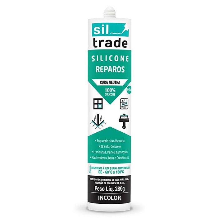 O Selante de Silicone Reparos é feito com silicone 100%, possui cura neutra e vulcaniza com umidade do ar (RTV), tornando-se uma borracha vedante e flexível. Adere em alvenaria, concreto, cerâmica, granitos e pedras em geral, fibra de vidro, vidro comum, vidro laminado e vidros em geral, madeiras, alumínio anodizado, aço inoxidável, cobre, metais galvanizados e zincados. É recomendado para vedações em superfícies lisas e porosas tais como: esquadrias, portas, cerâmicas, vidros, telhas, motores, luminárias, contêineres, equipamentos elétricos e outros similares.