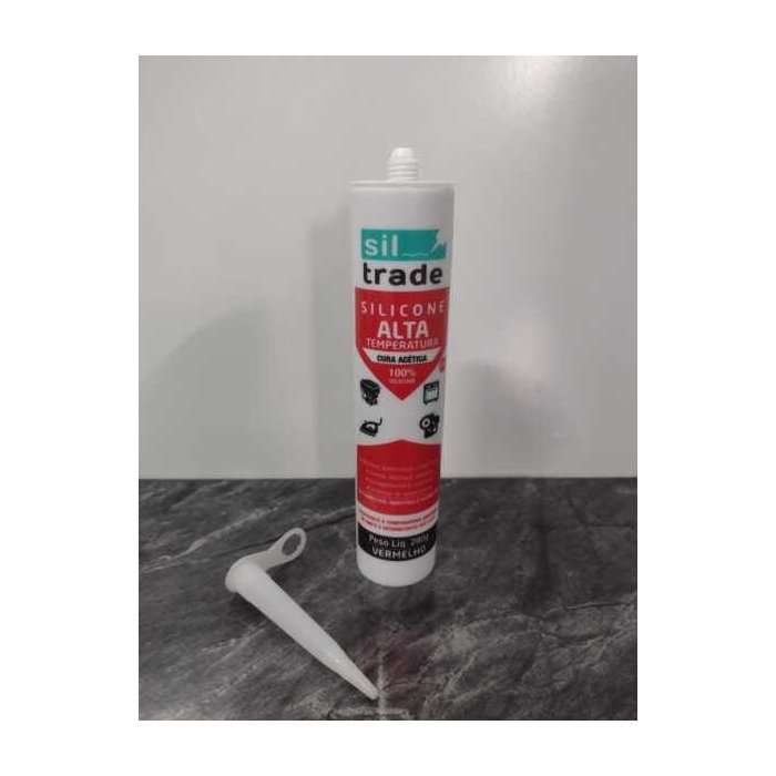O Selante de Silicone Alta Temperatura é feito com silicone 100 %, possui cura acética, vulcaniza com umidade do ar (RTV), tornando uma borracha vedante e flexível.  Adere em vidro comum, temperado, alumínio anodizado, aço inox e superfícies vitrificadas. Recomendado para vedações em motores em geral, caixa de câmbio, escapamento bombas d'água ou óleo, chaminés, coifas, caldeiras etc.
