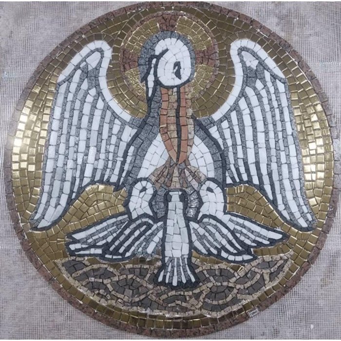 O Pelicano Eucarístico é um símbolo católico que apresenta relação direta com a refeição por excelência, a Eucaristia, uma vez que Cristo deu seu próprio sangue para alimentar o povo. Assim, o pelicano, ave grande que vive em regiões aquáticas, apresenta relações diretas com o sacrifício de Jesus afinal, segundo a Lenda do Pelicano Eucarístico, na falta de peixes para alimentar seus filhotes, o pelicano bica o próprio peito oferecendo sua carne e sangue para os filhos. Aplicações: Nossos produtos são entregues montados de fácil aplicação - ideal para ambientes internos e externosEspecificações técnicas do mosaico:Feito com pedras - Mármores e granitos de todo o Brasil e importados da Europa e Ásia - para obter todas as cores desejadas em pedras naturais;Vem todo montado sobre tela, só colocar conforme manual de colocação,Resistência e Durabilidade em área interna e externa;Espessura de 10 mm – Mesma espessura do porcelanato ou piso cerâmicoMosaico feito integralmente à mão com técnica do mosaico romano;É possível mudar as cores e materiais? Recebemos frequentemente essa pergunta, no entanto, não recomendamos fazer alterações nas cores e materiais padrão. Fazer mudanças pode resultar em um resultado que pode não atender às suas expectativas.