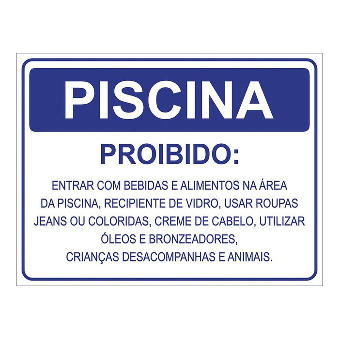 As placas de sinalização, Regras da Piscina, tem como objetivo informar os usuários as regras da utilização correta da piscina.