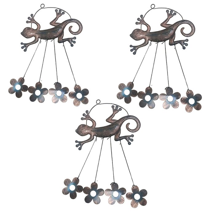 Sino Dos Ventos Flores Lagarto Kit 3 Unidades Decoraçao Jardim Quintal Varanda Ambiente Externo Enfe Bronze