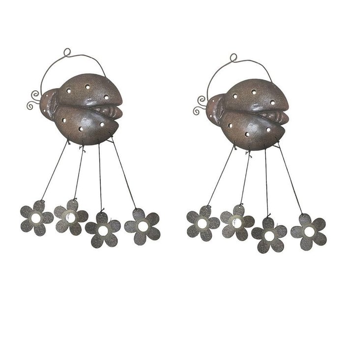 Sino Dos Ventos Joaninha Flores Cisne Kit 2 Unidades Decoraçao Varanda Enfeite Quintal Jardim Prata
