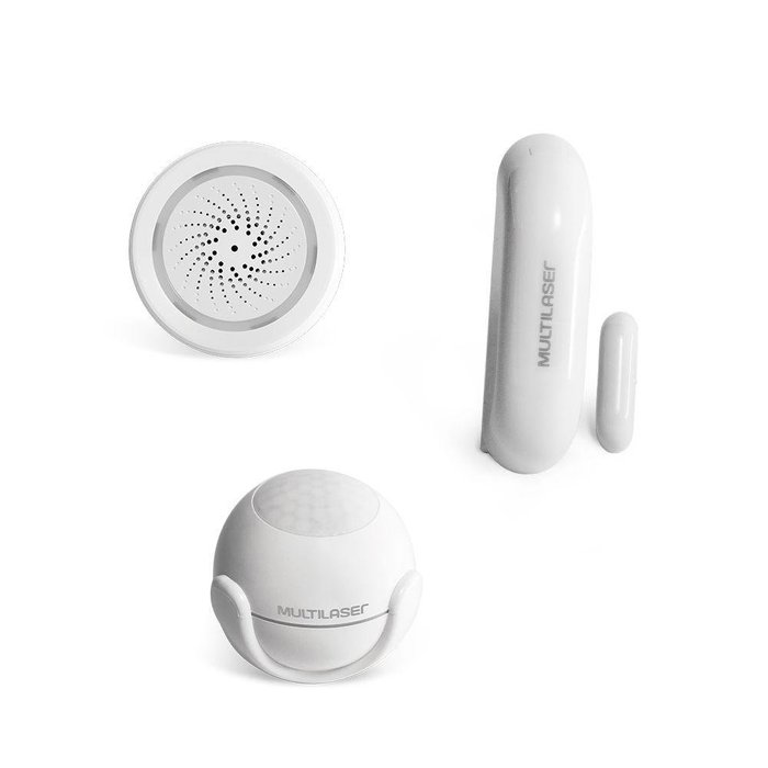 Combo Segurança - Sirene De Alarme Wi-fi, Sensor De Abertura Porta E Janela Wi-fi E Sensor De Presença Wi-fi Multilaser Liv - Se125k Se125k O combo ideal para deixar a sua casa mais inteligente! Conta com uma a Sirene de Alarme Inteligente Wi-Fi da série Multilaser Liv é essencial para um sistema de alarme completo. Integrada a sensores de presença e de abertura da série Multilaser liv, este produto oferece ainda mais segurança para o ambiente residencial ou comercial. Operando a baterias, este produto opera 100% sem fios, possui instalação plug-and-play. Com duração de alarme programável, opções configuráveis de odia e design discreto, é o equipamento ideal para um ambiente mais moderno e conectado. O Sensor de Abertura Inteligente Wi-Fi da série Multilaser Liv é essencial para um sistema de segurança moderno e compacto, podendo ser instalado em ambientes residenciais ou comerciais. Aplicável a portas ou janelas de qualquer tipo, este sensor funciona a baterias e possui funcionamento através de campo magnético, portanto, é 100% sem fios, oferecendo versatilidade e facilidade de instalação. O equipamento possibilita ter controle a distância, através de aplicativo Multilaser Liv, sobre status fechado ou aberto da porta ou janela à qual é aplicado e pode integrar sistema de alarme, se tornando o periférico disparador de sirene, oferecendo ainda mais segurança. Seu design discreto e compacto e o sistema de instalação plug-and-play, tornam esse equipamento indispensável para um ambiente mais moderno e conectado. O Sensor de Presença Inteligente Wi-Fi da série Multilaser Liv é ideal para ser aplicado em ambientes residenciais ou comerciais, oferece reconhecimento de presença e movimentos a uma distância de 6 metros e com um ângulo de acionamento de até 110°. Com design compacto e elegante, esse equipamento funciona a baterias, sendo, portanto, 100% livre de fios. De instalação plug-and-play, gerenciamento e configuração simples através de aplicativo Multilaser Liv, este sensor é ideal para integração com sirene de alarme e oferece mais segurança ao ambiente. Especificações Técnicas