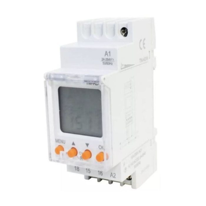 Capacidade de programação: a) 52 comutações, consistindo cada uma de horário de acionamento + tempo variável de operação entre 1 a 59 segundos. b) 52 comutações abrangendo 26 horários de liga e 26 de desliga.