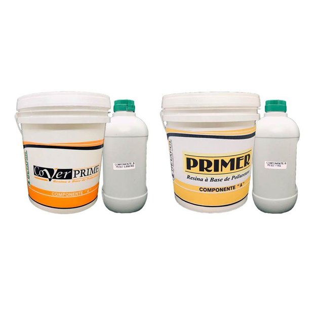 Primer, para que haja uma maior ancoragem do poliuretano sobre o substrato recém tratado, sugerimos fazer o revestimento de primer na superfície, sendo este um material mais fluido para que seja possível uma maior penetração do poliuretano sobre a porosidade do substrato vedando totalmente a superfície. Este é fundamental para adesão do Coverprime 1034 ao substrato.