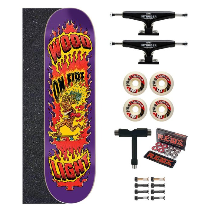 O Skate Wood Light Profissional é ideal para skatistas exigentes em busca de qualidade. Com peças selecionadas no mercado brasileiro, oferece ótimo custo-benefício, rivalizando com produtos importados. Projetado para atender às demandas dos skatistas mais exigentes, é recomendado para todas as idades e níveis de habilidade. Testado e aprovado por nosso time, garante desempenho superior e durabilidade excepcional. O shape da linha Maple da Wood Light é composto por 7 lâminas de HARD MAPLE CANADENSE, madeira utilizada nos melhores shapes. Prensado com resina epóxi, oferece resistência e durabilidade, além de pop aprimorado. Com acabamento impecável, cortes precisos feitos em CNC, o shape mantém uniformidade para sessões consistentes. Estampa aplicada com tecnologia Heat Transfer UV, alta resolução e resistência a impactos, melhorando o deslize nas manobras. O Skate Wood Light Profissional tem trucks Intruder em liga de alumínio tratada, oferecendo resistência e durabilidade. Encaixe perfeito dos rolamentos e amortecedores de alta resistência para melhor desempenho. As rodas Moska, feitas de uretano com dureza de 53D, têm formato estreito e excelente aderência. Ideais para bowls, mini-ramps, banks, street e pisos de concreto. Rolamentos RedBones reconhecidos pela qualidade superior, com anéis de aço reforçados e esferas super-resistentes. Pré-lubrificados com scream da Bones, são um dos mais rápidos do mercado. O Skate Wood Light Profissional inclui parafusos especiais Black Sheep, lixa importada Jessup de alta qualidade, resistência e chave T profissional de montagem. A Wood Light é a melhor fabricante de shapes e skates do país. Desde 1999, se destaca no mercado, inovando em desempenho e design. Reconhecida pela qualidade superior, diferencia-se de brinquedos vendidos como profissionais. A equipe Wood Light desenvolve produtos cada vez melhores, atendendo às necessidades dos skatistas.