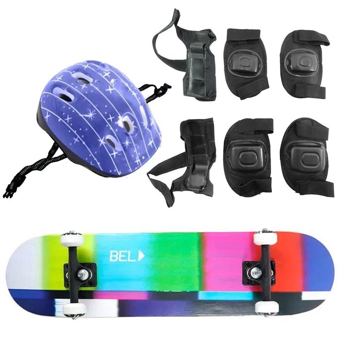 Skate Semi Pro + Kit Proteção Completo Estampa Doce Belfix - Azul