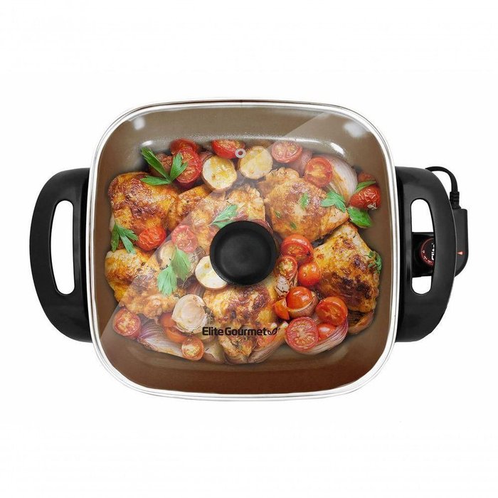 Skillet Elétrica Elite Gourmet 12x12 Com Revestimento Cerâmico (cinza)