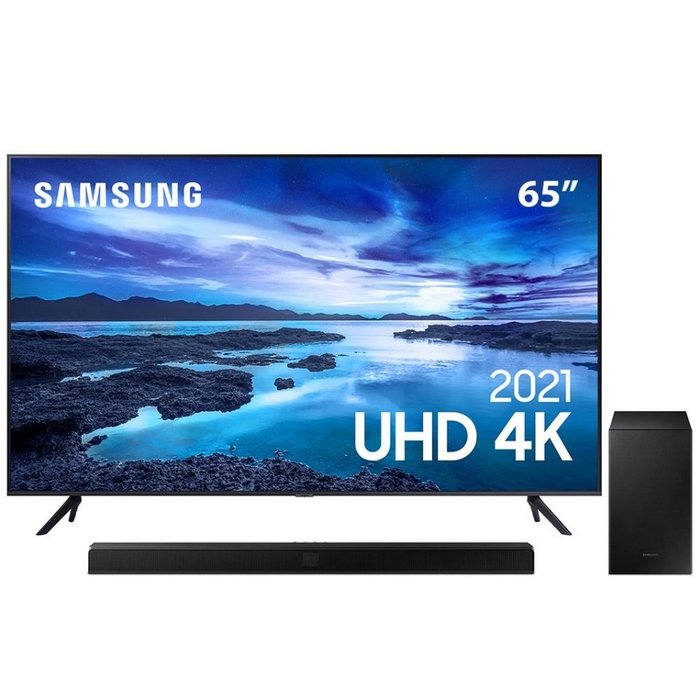 Smart Tv 65 Polegadas UHD 4K Samsung 65AU7700 + Soundbar Samsung HW-T555