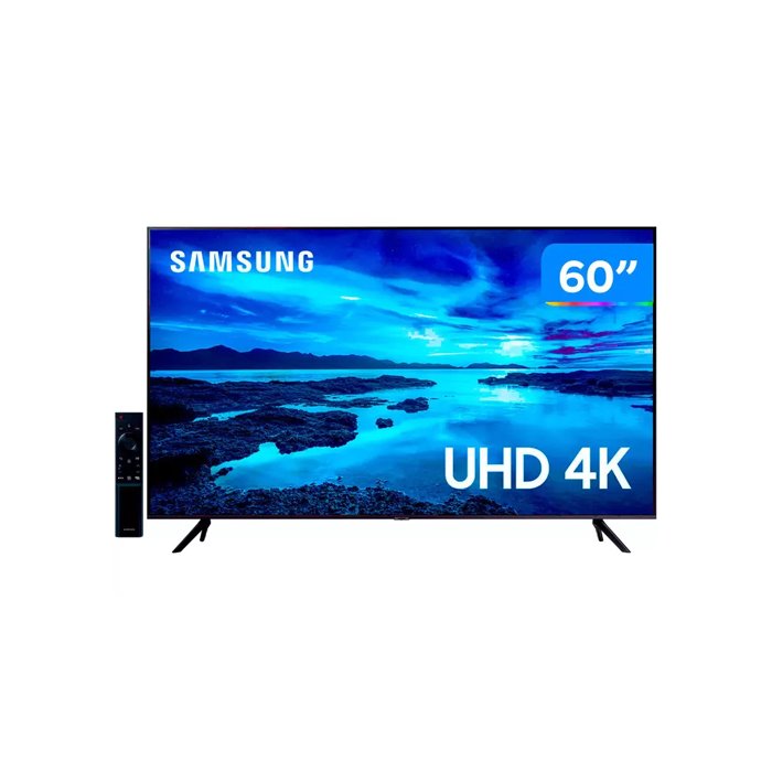Ficha Técnica:Marca: Samsung;Modelo:UN60AU7700;Polegadas:60";Resolução:4K;Tipo de Painel: VA;Tecnologia: Crystal;Frequência:60Hz;Sistema Operacional: Tizen;Conectividade: Bluetooth e Wi-Fi;Conexões:3 entradas HDMI - 1 USB - 1 entrada LAN - 1 Saída óptica - 1 Entrada RF;Processador: Crystal 4K;Controle Remoto Único com controle de voz (TM2180A);Modo Game;Modo Game Automático;Assistente Virtual;Alexa Integrado: sim Google Assistente integrado: sim;Recursos Exclusivos da Marca: Bixby;Resolução da Tela:3840x2160p;Formato da Tela:16:9;Potência dos Alto-falantes:20W;Distância Recomendada de Visualização:1,8m;Voltagem: Bivolt;