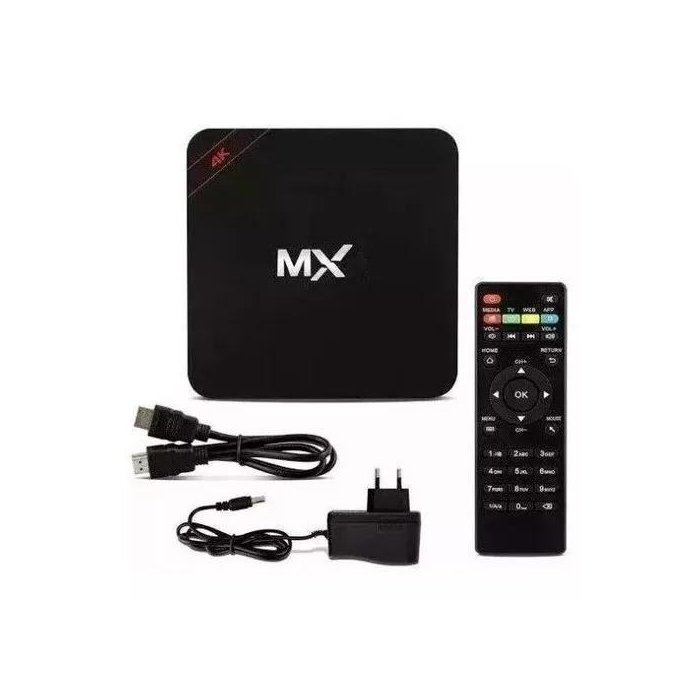 Converta sua tv comum em uma smarttvAtenção: esse equipamento é um mini pc com sistema android 8.1 para assistir videos com uma infinidade de aplicativos como; youtube, navegar na internet, redes sociais e jogos simples para android.Produto não acompanha nenhum tipo de listagem, vai como de fábrica, pronto para uso.Tv box é um aparelho que permite a qualquer tv o acesso a funções mais interativas, tais como, acesso a aplicativos e internet.Permite a instalação de aplicativos, reprodução de arquivos e uma infinidade de possibilidades diretamente na tela da sua tv, ideal para uso de aplicativos como netflix, youtube ele garante bom desempenho com o chipset aliado ao android 8.1 possuí 4 entradas usb para conexão de periféricos como teclado, mouse e pendrive.Aceita cartão de memória e conta com entrada para rede cabeada além de conexão wifi.Descrição:- o tv box é a mais nova geração de reprodutor multimídia e gateway multimídia residencial, que é a melhor maneira de aproveitar a vida em rede;- a mais recente tecnologia baseada no sistema androide na caixa permite muitos aplicações incluindo navegador web, jogos 2d / 3d, skype / qq internet chat de vídeo, software de aplicativos de escritório e assim por diante;- caixa de tv ott suporta alta velocidade de wi-fi para aplicações de rede, suporta 2.4ghz wireless mouse, teclado e controle remoto;- suporte hdmi 720p-2160p full 3d hd 4k;- suporte a recursos avançados como pppoe, dlna e miracast;- suporte a dispositivos externos, incluindo unidade usb flash, disco rígido usb e cartões de memória;- android 8.1 super atualizado;- 3gb de memoria ram e 16gb de memoria interna;- aceita cartão sd de até 32gb.Entradas disponíveis no parelho:- 4 usb;- 1 hdmi;- 1 sd (não é o micro sd e sim aquele maior);- 1 para áudio (p2);- 1 entrada da fonte (5v - 2a);- 1 rca 3x1 (avi).Itens inclusos:- 1 tv box- 1 controle- 1 fonte- 1 cabo hdmi- 1 manual de instrução- 1 mini teclado wiriless com bateria recarregável e cabo usb para recarga da bateria nas cores branco e pretoImportante: mini controle nas cores branco ou preto - enviamos conforme disponibilidadeComo usarAssim que comprar o aparelho, você liga em sua tv pelo cabo hdmi, pode ser conectado via cabo de rede ou wifi (de sua escolha). Após isso basta ir em configuração, wifi e adicionar seus dados de wifi ou desativar a opção, mantendo o fornecimento de internet via cabo. Vá em configuração, contas e logue em sua conta google, após isso seu box já estará pronto para uso, dando acesso ao playstore onde permite baixar qualquer aplicativo. Lembrando que o aparelho vai pré configurado alguns aplicativos, quais é preciso atualiza-los via playstore assim que começar a usar o box.Obs: imagens meramente ilustrativas.Número de Homologação Anatel: 140192101647