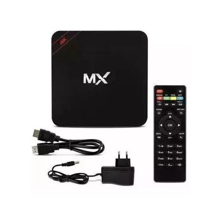 Converta sua tv comum em uma smarttvAtenção: esse equipamento é um mini pc com sistema android 8.1 para assistir videos com uma infinidade de aplicativos como; youtube, navegar na internet, redes sociais e jogos simples para android.Produto não acompanha nenhum tipo de listagem, vai como de fábrica, pronto para uso.Tv box é um aparelho que permite a qualquer tv o acesso a funções mais interativas, tais como, acesso a aplicativos e internet.Permite a instalação de aplicativos, reprodução de arquivos e uma infinidade de possibilidades diretamente na tela da sua tv, ideal para uso de aplicativos como netflix, youtube ele garante bom desempenho com o chipset aliado ao android 8.1 possuí 4 entradas usb para conexão de periféricos como teclado, mouse e pendrive.Aceita cartão de memória e conta com entrada para rede cabeada além de conexão wifi.Descrição:- o tv box é a mais nova geração de reprodutor multimídia e gateway multimídia residencial, que é a melhor maneira de aproveitar a vida em rede;- a mais recente tecnologia baseada no sistema androide na caixa permite muitos aplicações incluindo navegador web, jogos 2d / 3d, skype / qq internet chat de vídeo, software de aplicativos de escritório e assim por diante;- caixa de tv ott suporta alta velocidade de wi-fi para aplicações de rede, suporta 2.4ghz wireless mouse, teclado e controle remoto;- suporte hdmi 720p-2160p full 3d hd 4k;- suporte a recursos avançados como pppoe, dlna e miracast;- suporte a dispositivos externos, incluindo unidade usb flash, disco rígido usb e cartões de memória;- android 8.1 super atualizado;- 3gb de memoria ram e 16gb de memoria interna;- aceita cartão sd de até 32gb.Entradas disponíveis no parelho:- 4 usb;- 1 hdmi;- 1 sd (não é o micro sd e sim aquele maior);- 1 para áudio (p2);- 1 entrada da fonte (5v - 2a);- 1 rca 3x1 (avi).Itens inclusos:- 1 tv box- 1 controle- 1 fonte- 1 cabo hdmi- 1 manual de instrução- 1 mini teclado wiriless com bateria recarregável e cabo usb para recarga da bateria nas cores branco e pretoImportante: mini controle nas cores branco ou preto - enviamos conforme disponibilidadeComo usarAssim que comprar o aparelho, você liga em sua tv pelo cabo hdmi, pode ser conectado via cabo de rede ou wifi (de sua escolha). Após isso basta ir em configuração, wifi e adicionar seus dados de wifi ou desativar a opção, mantendo o fornecimento de internet via cabo. Vá em configuração, contas e logue em sua conta google, após isso seu box já estará pronto para uso, dando acesso ao playstore onde permite baixar qualquer aplicativo. Lembrando que o aparelho vai pré configurado alguns aplicativos, quais é preciso atualiza-los via playstore assim que começar a usar o box.Obs: imagens meramente ilustrativas.Número de Homologação Anatel: 140192101647