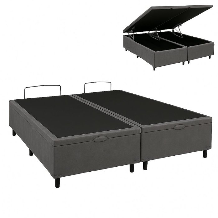 So1clique Cama Box Baú Casal Bipartida, Base Reforçada, 138x188cm, Suede Cinza, 2 Compartimentos