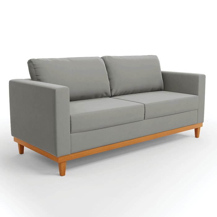 Sofá 03 Lugares Juliette Suede Base Madeira Castanho - D'Rossi Grafite