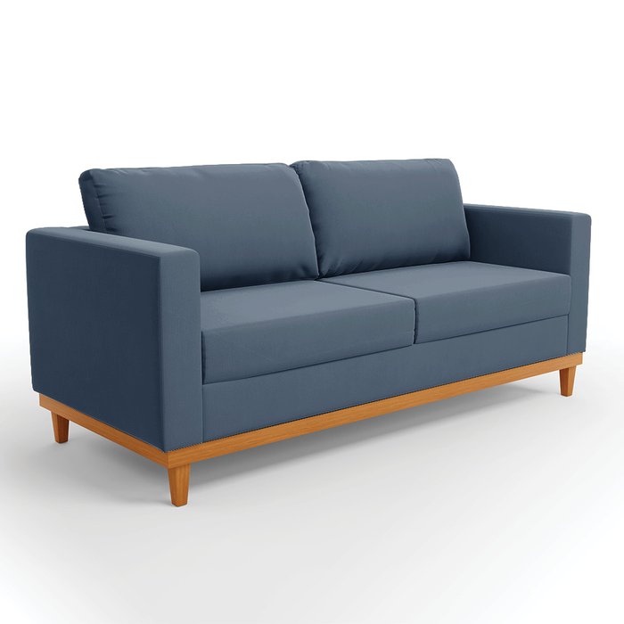 Sofá 03 Lugares Juliette Suede Base Madeira Castanho - D'Rossi Azul Marinho