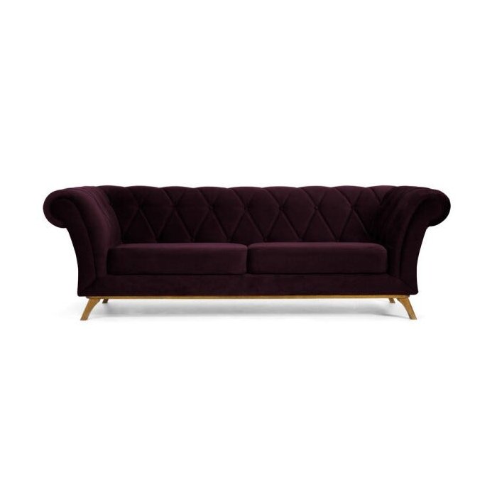 Sofá 1,80M 3 Lugares Base Madeira Império B-292 Veludo Uva - Domi