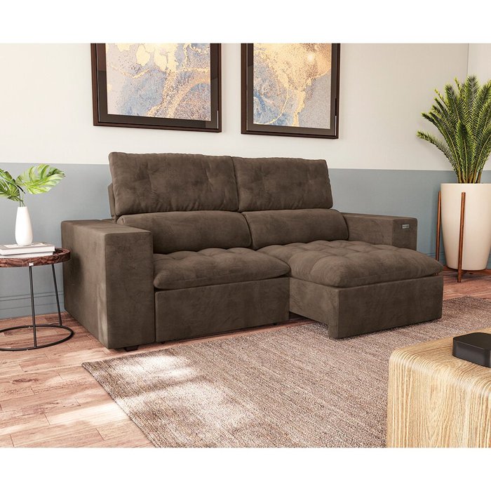 Sofá 2,08 Metros Retrátil e Reclinável Kappesberg New Vintage Plus Tabaco