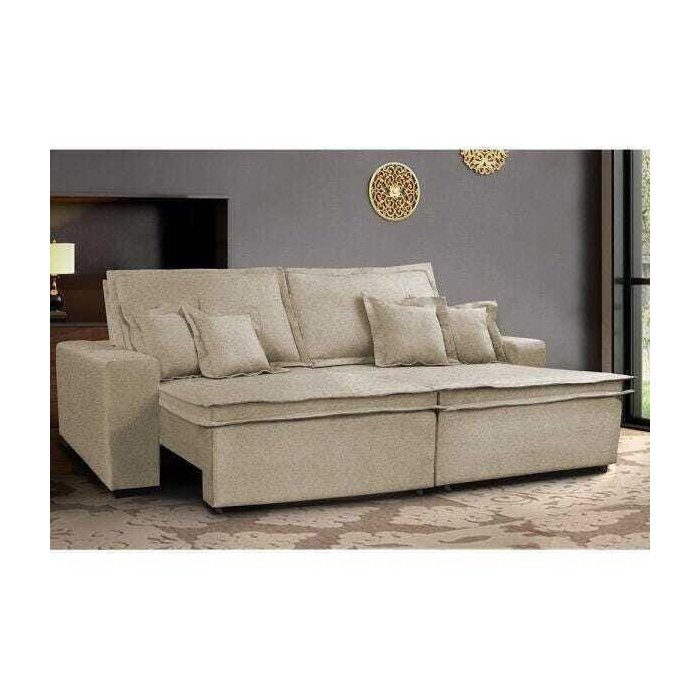 Sofá 2.12M Tecido Impermeável de Linho com Molas Cama Inbox Premium Bege