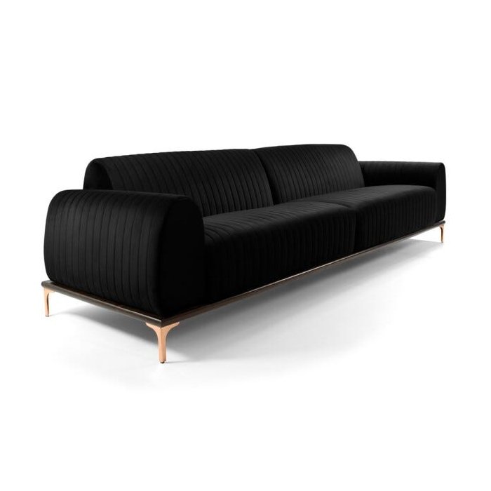 Sofá 2,60M 4 Lugares Pés Rose Gold Molino B-300 Veludo Preto - Domi