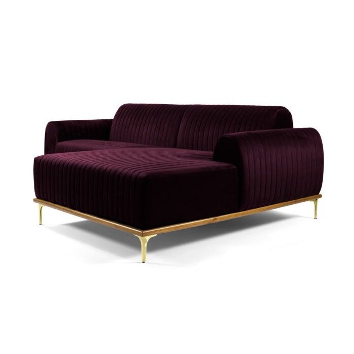 Sofá 2,65M 4 Lugares com Chaise Direito Pés Gold Molino B-292 Veludo Uva - Domi Uva