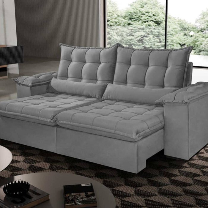 Sofá 2,70 Retrátil e Reclinável Malibu com Molas Bonnel 4 Lugares Grafite