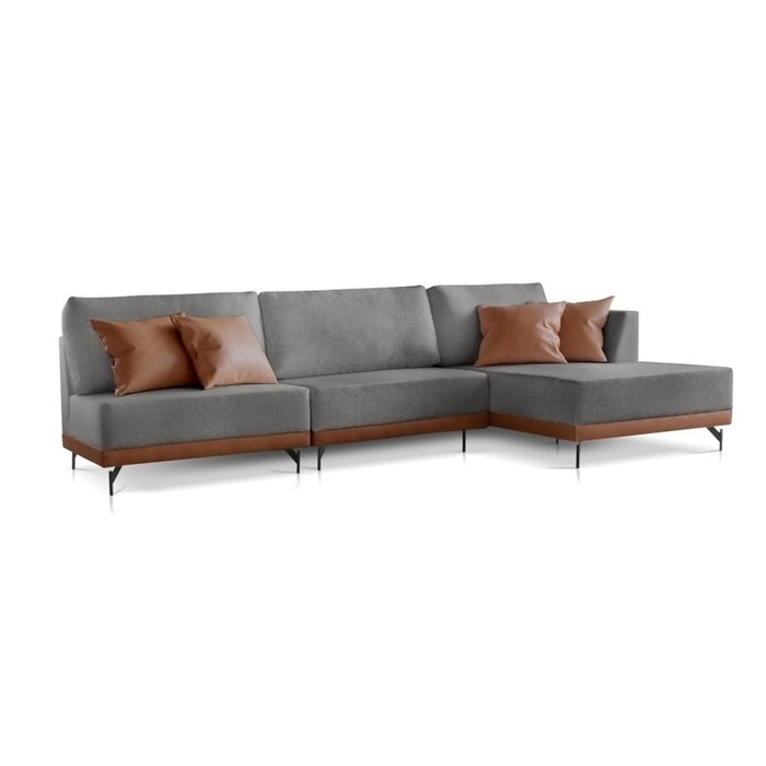 Sofá 2 e 3 Lugares Luxo Modulado Linho Cinza Médio 2,6m Chaise Ld Cinza Médio